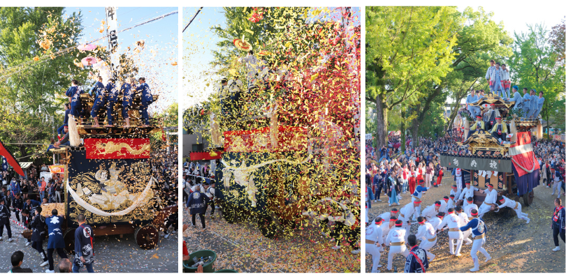 豊田市の市街地を、八輌の豪華絢爛な山車(だし)が紙吹雪を舞わせながら勇壮かつ華麗に曳き回される様子が最大のみどころです。土曜日は市内各所を巡行し、日曜日には挙母神社へ集結します。