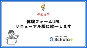 今後もSchola+(スコラプラス)は、新機能リリース、機能改善を図ってまいりますので、よろしくお願いいたします。