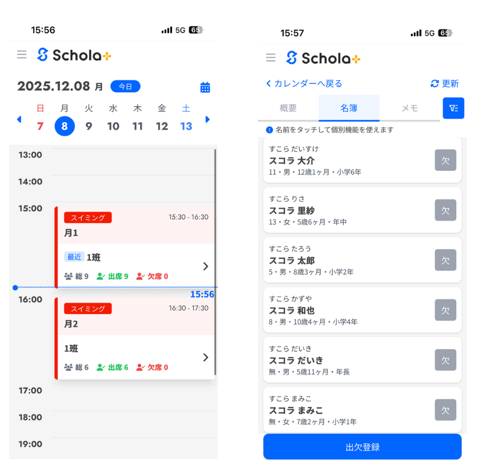 担当クラスのスケジュールや出席者の確認ができるようになります!