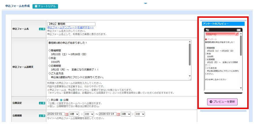【ご利用者様へお知らせ】申込フォームのプレビュー表示廃止されます。