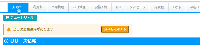 🔔当日の変更連絡があります  詳細を確認する  のボタンが表示されます。